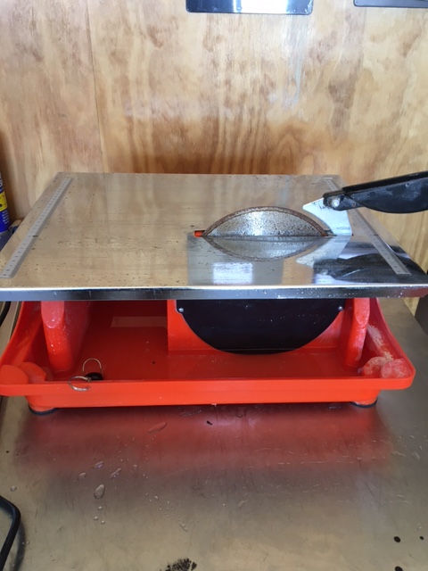 Wet electric tile cutter. Used for cutting and bevelling ceramic or porcelain tiles. table size 460mm x 360mm. Comes in a carry case.